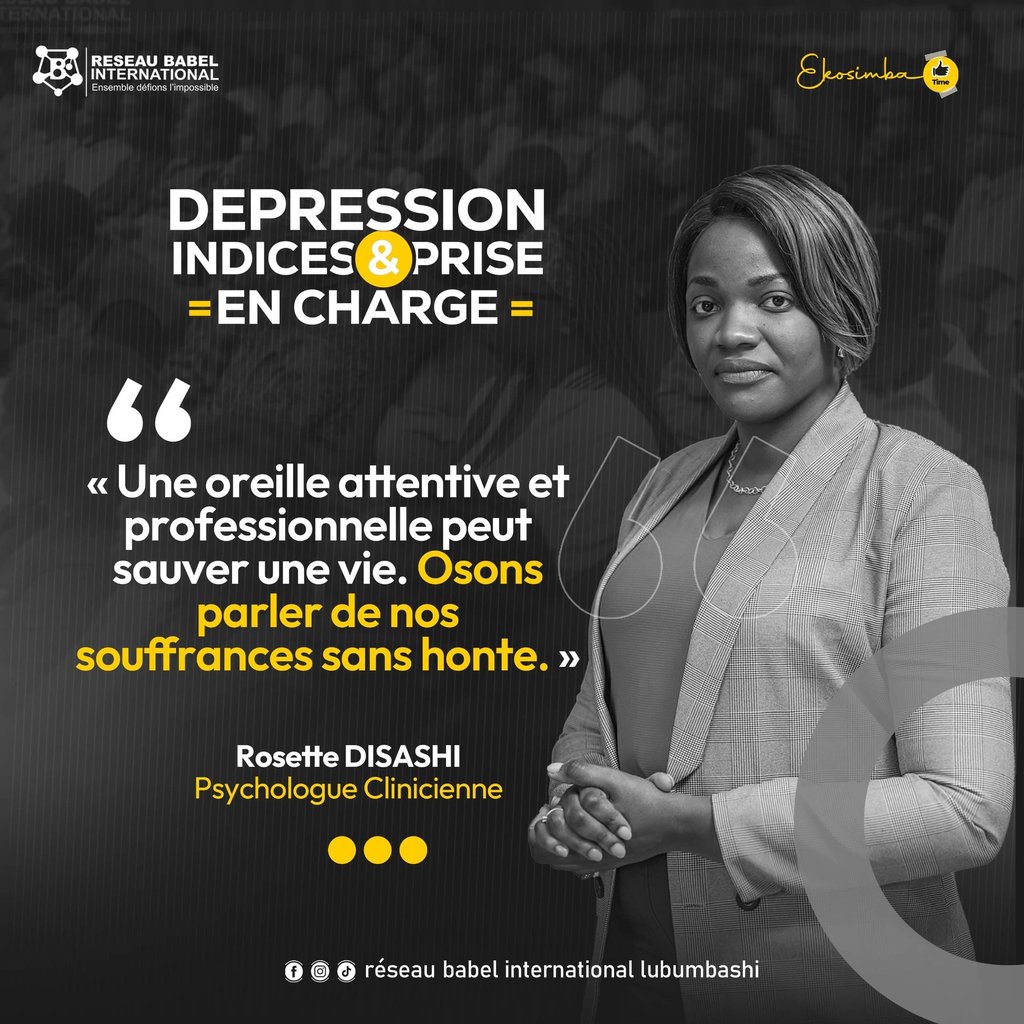 Parmi les moments forts de la première édition d'Ekosimba Time à Lubumbashi, l'intervention de Madame Rosette Disashi a particulièrement marqué les esprits. Abordant un sujet aussi délicat qu'essentiel – la dépression, ses indices et sa prise en charge – elle a offert un éclairage précieux et profondément humain.